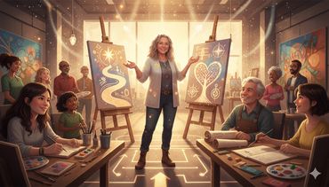 An author, artist, and creative guide, she now expands her offerings into The World of AI Art — blending heart, imagination, and technology to awaken new realms of creative expression.